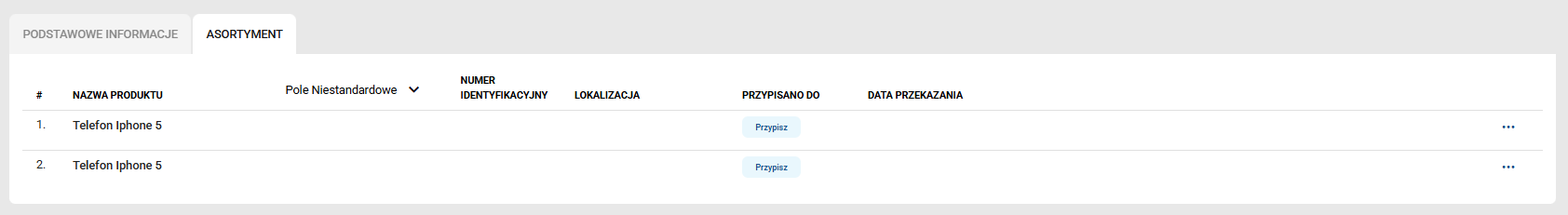 5. Wybierz na liście pozycji magazynowych dodany produkt i otwórz zakładkę Asortyment.