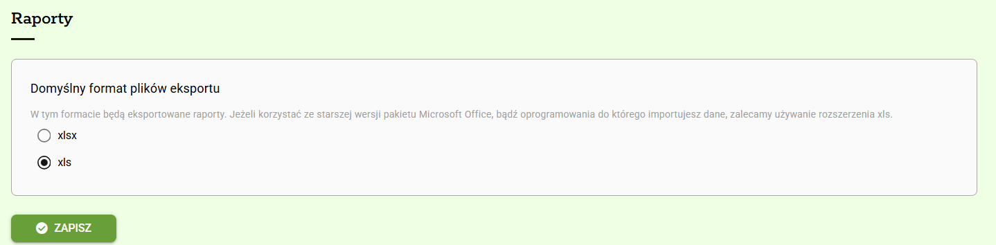 5. Format eksportowanych raportów możesz zmienić w Ustawieniach systemu, w zakładce Raporty: