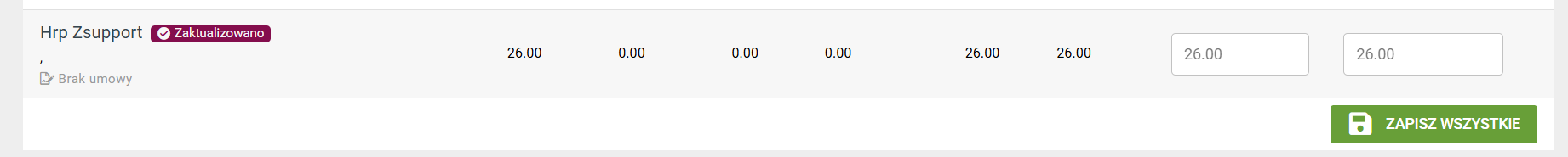 Aktualizację można zapisać również grupowo dla wszystkich użytkowników przyciskiem na dole listy 'ZAPISZ WSZYSTKIE'.
