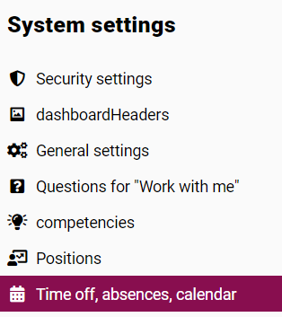 2. In the modules visible on the left-hand side of the panel, select HOLIDAYS, ABSCENCES, CALENDARS.