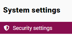 2. From the list visible on the left side of the panel, select the SECURITY SETTINGS module.