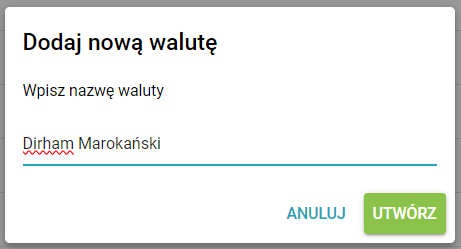 4. Enter a name for the currency and confirm by clicking CREATE.