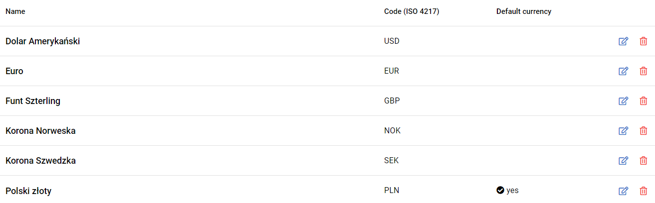 3. To add a new currency, click on the ADD CURRENCY button visible in the top left-hand corner of the panel.