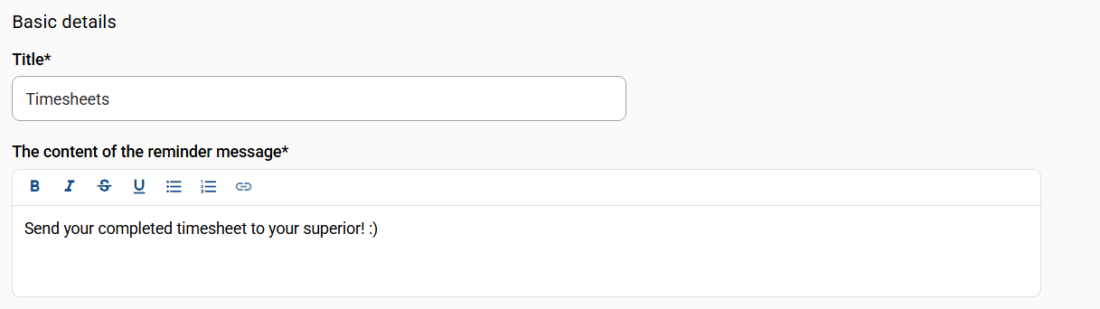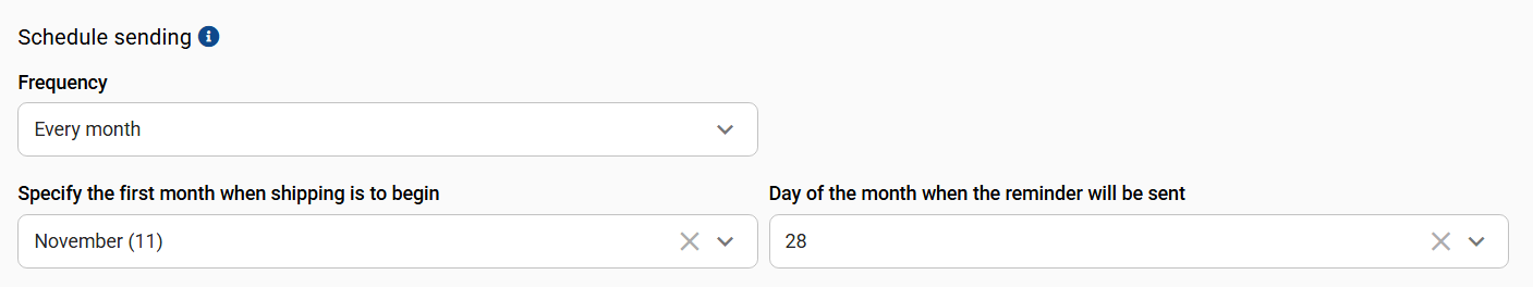 4. Complete the reminder information: description, set the frequency of sending, select reminder recipients.