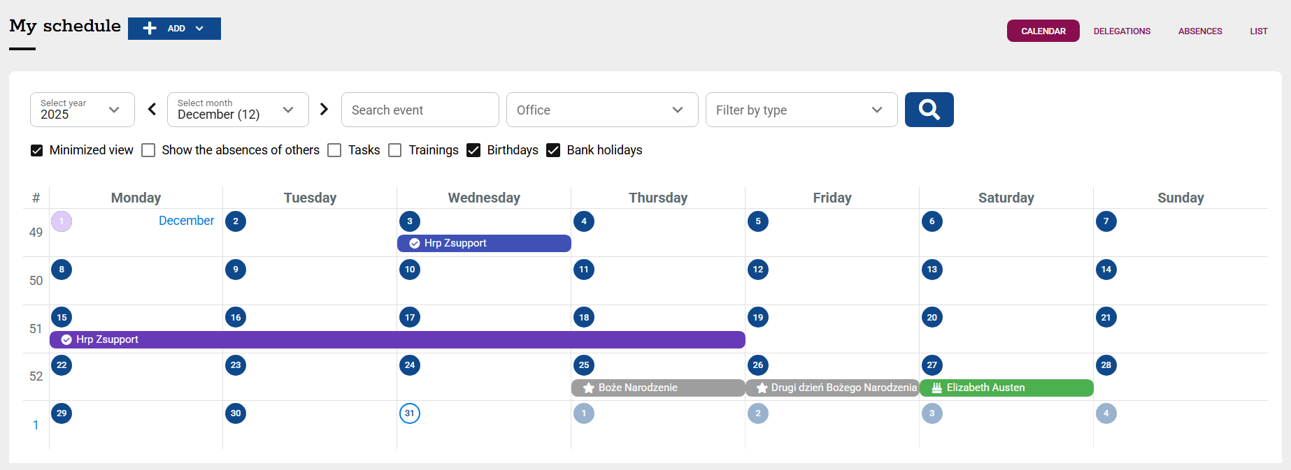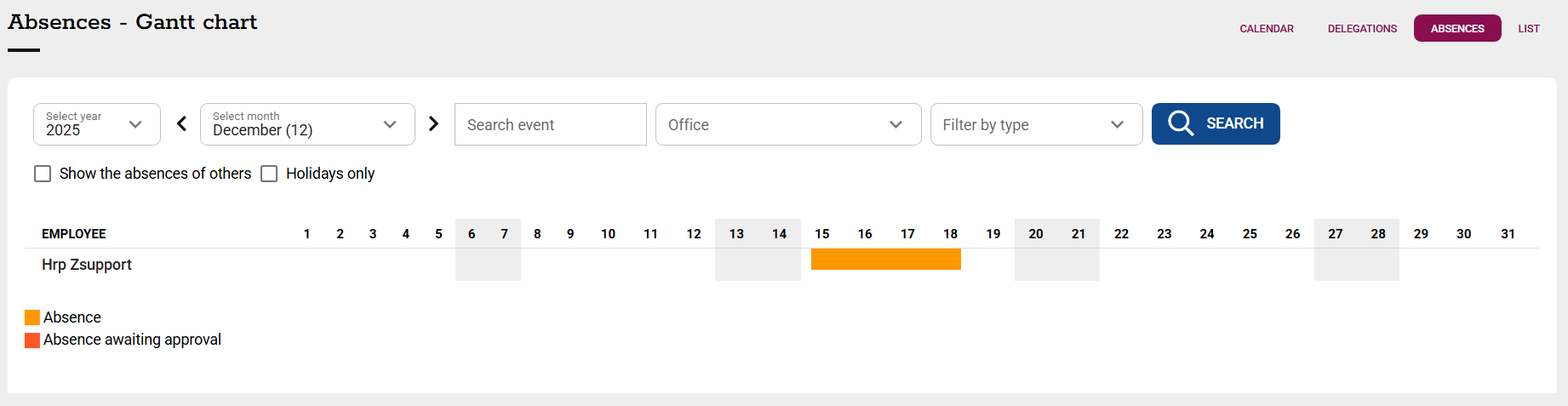 -ABSENCES - in the form of a Gantt chart,