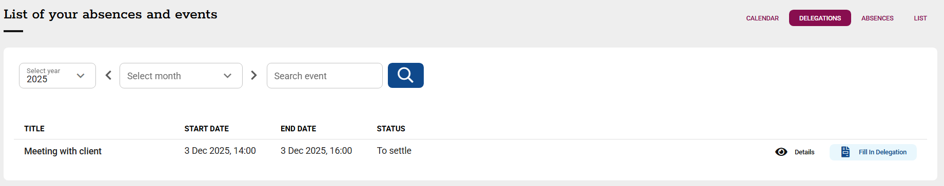 -DELEGATIONS - listed with details and the possibility to complete,