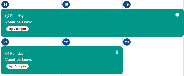 Once the request is approved by your supervisor, its status and icon in the Calendar will change and a notification of the status change will be sent by email to your mailbox.