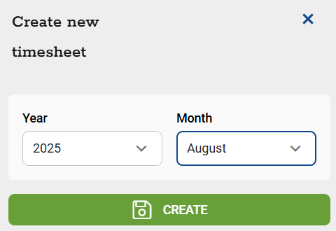 3. Select the year and month for which you want to create a timesheet and select CREATE.