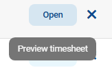 4. To view a timesheet or edit working hours (if your supervisor has given you such permissions), select the timesheet from the list in the ALL TIMESHEETS tab or click OPEN (Card Preview) visible on the right side of the panel.