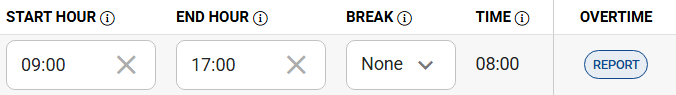 2. In the CURRENT TIMESHEET tab, select REPORT in the Overtime column on the selected day.
