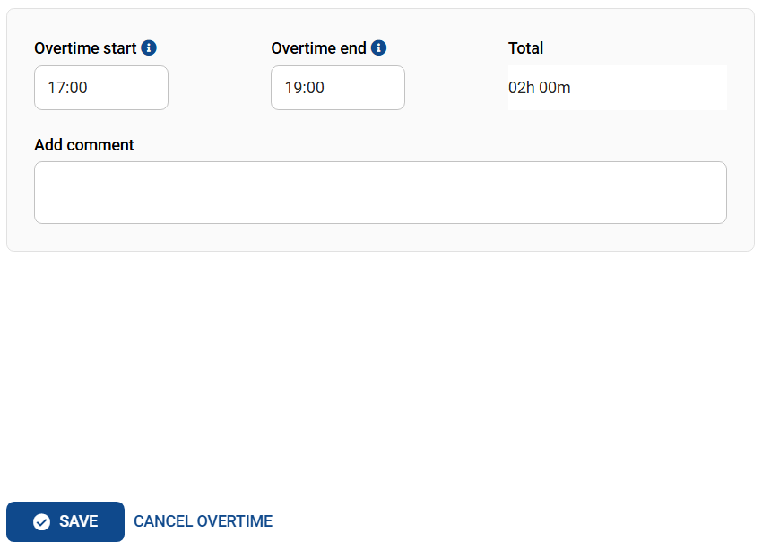 3. Enter the overtime hours and click SAVE.