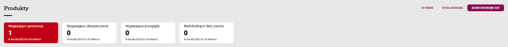 3. W tym samym module wybierz zakładkę Monitorowanie dat. System podświetla kategorie, w których monitorowane daty wypadają w najbliższych 30 dniach.