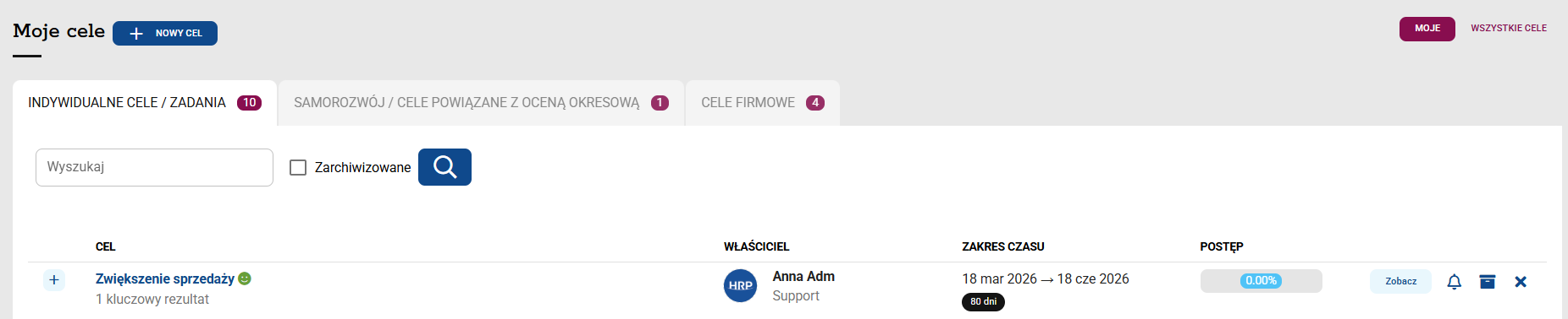 2. W panelu wybierz odpowiednią zakładkę i wejdź w szczegóły celu, który chcesz edytować.