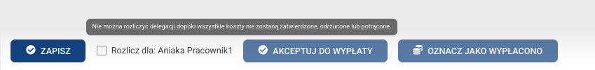 - Odrzucono - Użytkownik wygenerował nieuzasadniony wydatek, ale zapłacił za niego np. prywatną kartą lub własną gotówką. PODLEGA ROZLICZENIU jest automatycznie nieaktywne.