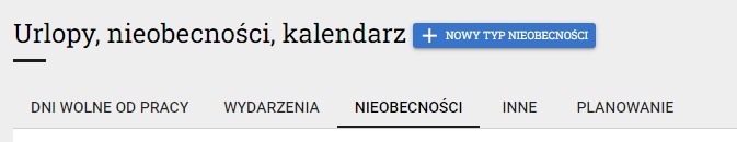 3. Wybierz zakładkę NIEOBECNOŚCI i kliknij przycisk NOWY TYP NIEOBECNOŚCI