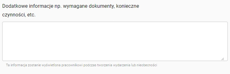 Pracownicy będą mogli dodawać nieobecność tego typu do swojego kalendarza. Nieobecności mogą być dodawane po akceptacji przełożonego lub bez.
