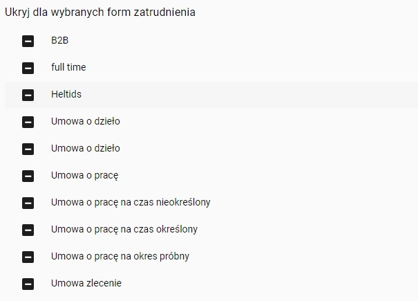 6. Zdecyduj, czy typ nieobecności będzie niedostępny dla niektórych form zatrudnienia.