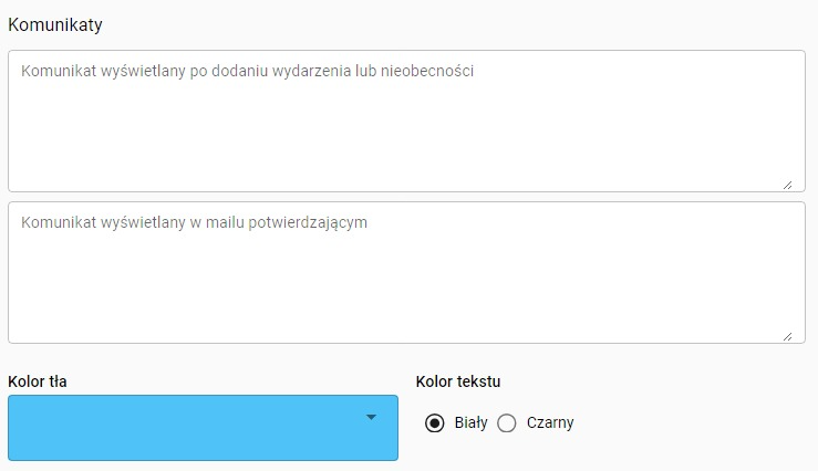 8. Dostosuj komunikaty wyświetlane po dodaniu nieobecności oraz po otrzymaniu maila potwierdzającego.