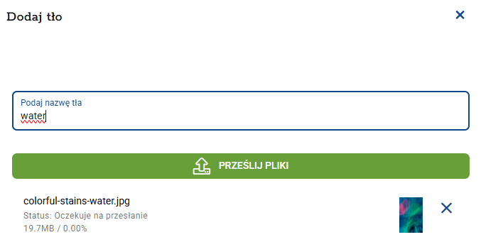 4. Wybierz odpowiedni plik graficzny ze swojego komputera, nadaj mu nazwę i kliknij PRZEŚLIJ PLIK.