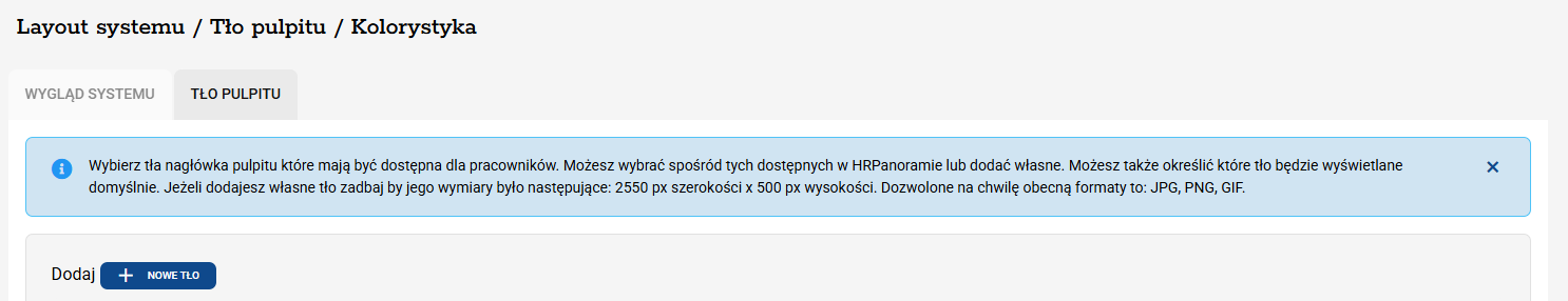 3. W zakładce TŁO PULPITU kliknij przycisk NOWE TŁO.