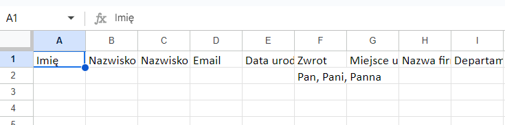 ***Jeżeli chcesz dodać dane, których nie w szablonie pliku, możesz użyć modułu Pól niestandardowych.