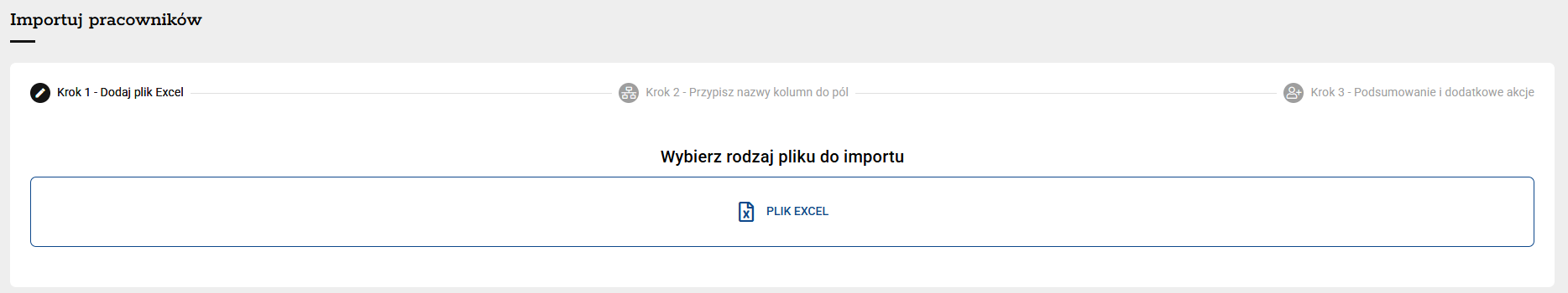 2. Kliknij przycisk +DODAJ a następnie IMPORTUJ PRACOWNIKÓW widoczny w lewym górnym rogu panelu.