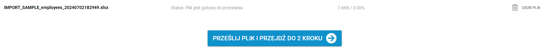 7. Plik został przesłany i wstępnie przeanalizowany. Aby zaimportować pracowników wykonaj następujące kroki: