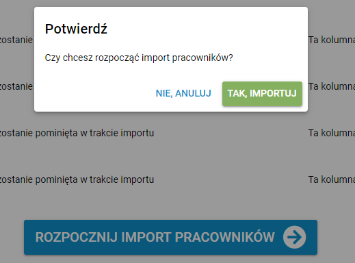 8. Po sprawdzeniu kolumn wybierz ROZPOCZNIJ IMPORT PRACOWNIKÓW i potwierdź.