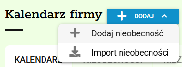 Jeżeli chcesz dodać większą liczbę nieobecności możesz skorzystać z importu za pomocą pliku excel. Instrukcję znajdziesz w artykule Importowanie nieobecności pracowników do kalendarza firmy.
