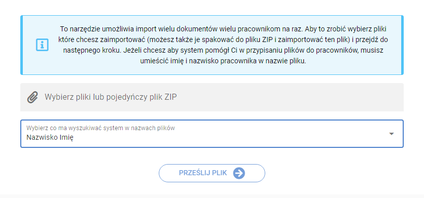 4. Jeżeli chcesz, aby system pomógł Ci przypisać dokumenty do pracowników, umieść Imię i Nazwisko (bądź inne dane wybrane z listy) w nazwie pliku.
