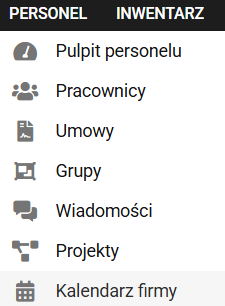 1. W module Personel wybierz zakładkę Kalendarz Firmy.